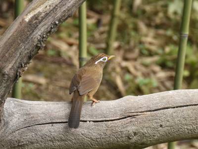 拉丁学名:Garrulax canorus。留鸟。为鸟纲、雀形目、画眉科、噪鹛属。体长19.5—25.6厘米,体重54—75克。雌雄羽色相似。额棕色,头顶至上背棕褐色,自额至上背具宽阔的黑褐色纵纹,纵纹前段色深后部色淡。眼圈白色,其上缘白色向后延伸成一窄线直至颈侧,状如眉纹,故有画眉之称。