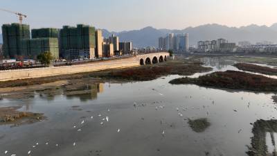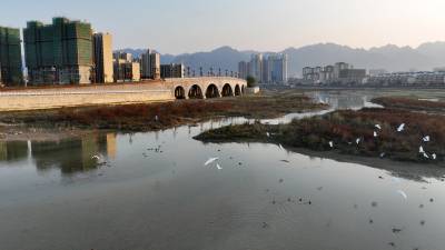 2022年12月5日,十堰市房县马栏河与沙沟河、鲍家河交汇处的城区桃园段河流浅滩湿地,一群白鹭在嬉水狂欢。房县马栏河河水汇入长江最大支流汉江,是该县的“母亲河”。近年来,房县对马栏河实施大治理、大保护,实现了“河变畅、水变清、岸变绿、城变美”。如今,一泓清流,吸引白鹭、野鸭、黑翅长脚鹬,还有白骨顶鸡群聚马栏河“安家”,构成县城一道亮丽的生态风景。