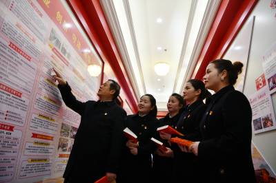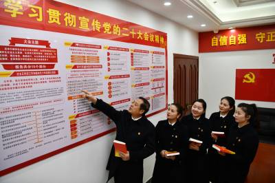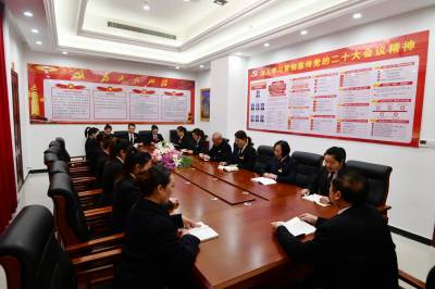 2022年12月6日,通城县状元广场党员学习党的二十大精神。