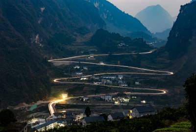 近几年来,湖北秭归着力加强“四好”农村路建设,大力实施乡村道路提档升级和环境整治,硬化黑化道路1700多公里,实施道路安防工程2100多公里。全县十二个乡镇、167个村的道路通行条件得到极大改善,有力促进了乡村振兴。图为2022年12月6日傍晚,车辆行驶在改造后的芝茅路槐树坪段。