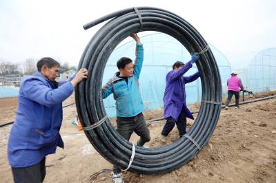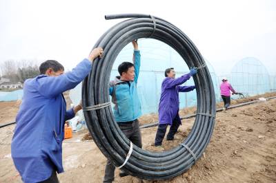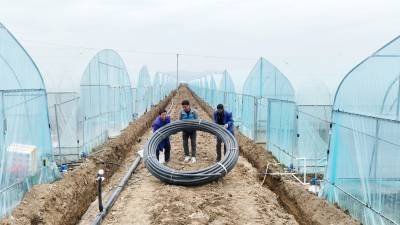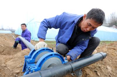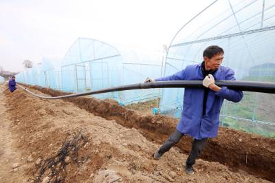 2022年12月8日,十堰市房县化龙堰镇汤峪村350亩高标准果蔬节水产业基地,由该省神农架林区红坪镇松果家庭农场业主徐松投资兴建,现在已完成投资260余万元,计划投资500多万元,图为当地农民在安装果蔬大棚微喷、滴灌节水管道。近年来,房县进一步优化营商环境,细化优惠政第,吸纳市场主体投资小型节水工程,“借船出海”发展蔬菜、火龙果、草莓等节水灌溉产业,通过利用民间资本“巧解”了小型节水工程建设资金不足的问题,有效推进了乡村振兴、促进了农民共同增收致富。目前,该县民间资本发展滴灌、微喷节水蔬菜面积达19.8万亩,节水耳菇5500万袋,节水增效带动了10万农民增收。