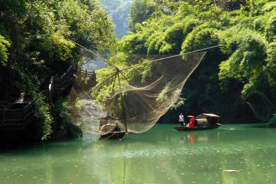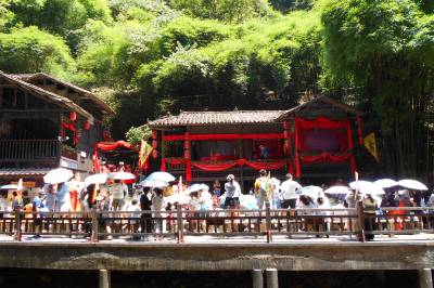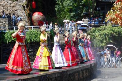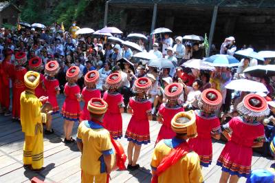 目前,三峡人家景区拥有长江峡江号子、宜昌丝竹、三音歌(兴山民歌)、皮影戏、南曲、薅草锣鼓、三棒鼓、夷陵版画、夷陵楠管、地花鼓、兴山山歌等11个非物质文化遗产表演项目,其中国家级非遗项目就有5个。拥有省、市、区级非物质文化遗产代表性传承人29人,手工艺人13人,其中峡江号子第五代传承人杨春善,薅草锣鼓传承人王新华、鲁邦文,三音歌传承人万会知均为省级传承人。(视界网 张国荣 摄)