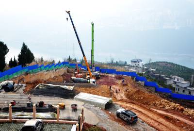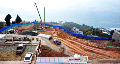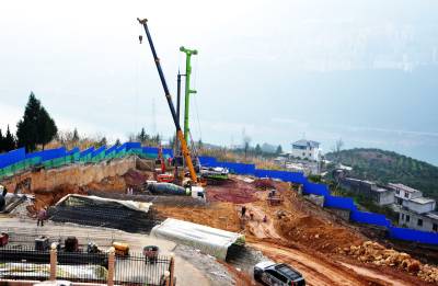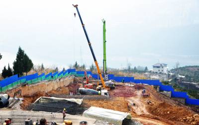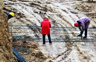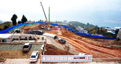 12月29日,巴东县城市福利院新建养护楼施工现场,湖北三晖建设有限公司机械在打桩基、浇筑混凝土,工人们在焊接钢筋笼。