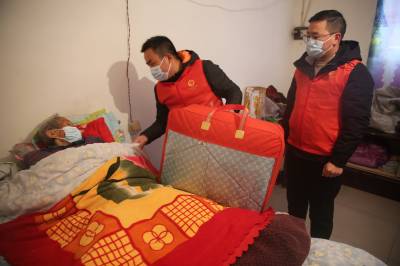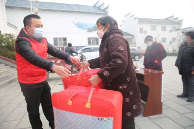 1月11日,村干部为老人送暖心踏花被。当日,秭归县茅坪镇建东村“两委”干部带领村青年志愿者,组成3个慰问小分队,采取以村落小组集中签字分发、分散入户(老弱病残)和子女带领的方式,对全村12个村落的216名70岁以上的老人开展节前走访慰问活动,为每名老人送上一床暖心踏花被。