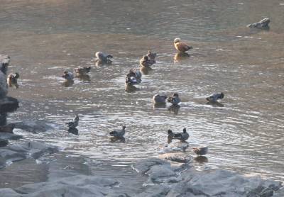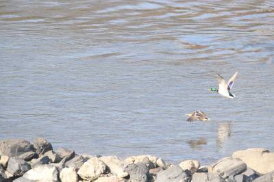 “大家往河对面的水边上看,有8只鸳鸯在戏耍。。。。。。。”1月11日,竹山县林业局野保站站长肖艳华在该县堵河流域(文峰乡化口大桥)一边用相机不停地按着“快门”拍照,一边告诉一块开展越冬水鸟调查的其他人员。