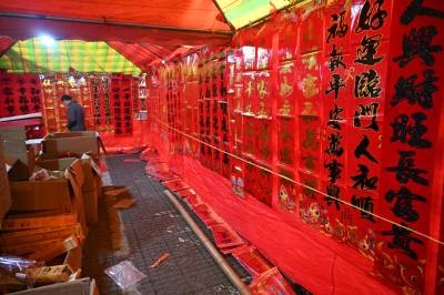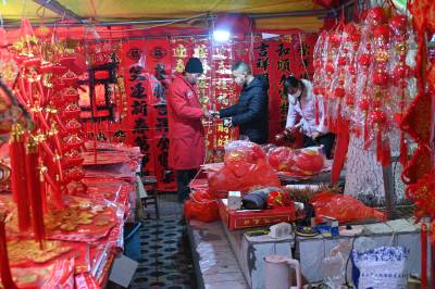 1月12日拍摄的十堰市郧阳区郧阳路九里岗桥年文化街市。进入腊月,郧阳区城市管理执法局及时在城区九里岗桥附近开设年文化喜庆临时街市,方便市民和进城采购年货的村民选购年文化喜庆用品,让全区群众过一个红红火火、欢乐祥和的新春佳节。视界网王涛摄(作者通联:王涛 电话:13872775898 单位:湖北省十堰市郧阳区水利和湖泊局 邮编:442500 银行卡号:邮政储蓄银行茶店支行 6221885200103900124)