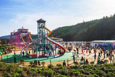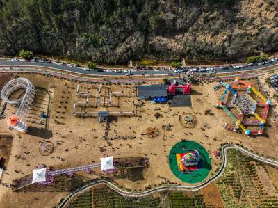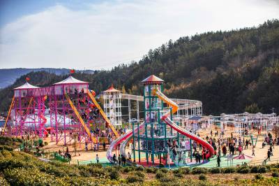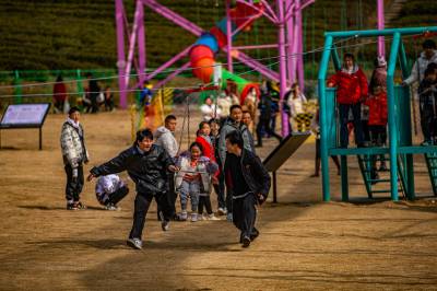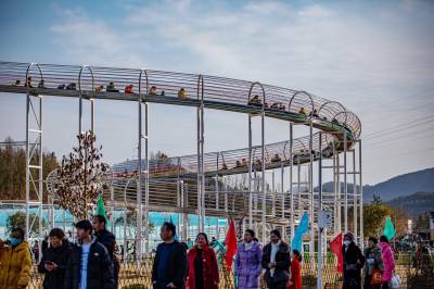在五福龙井智慧农创园景区内,游客三五成群,或步行或开车进行游玩。真人cs、魔鬼滑梯、天空步道、动力小火车等游玩项目,吸引了无数亲子、家庭游为主的游客前来体验,共享节假日的美好时光。春节期间,五福龙井智慧农创园为丰富游客体验,推出浪漫的萌兔灯光秀、网红美食节、亲子欢乐海洋等主题活动,为新春更添火热气氛。