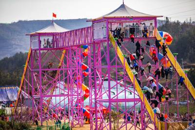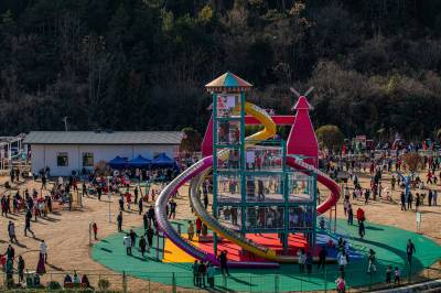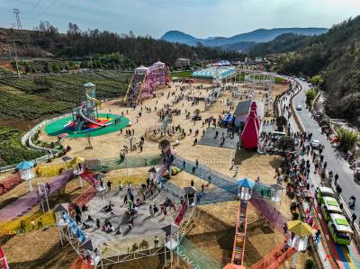 1月27日,农历正月初六,在竹山县宝丰镇龙井村游乐园,车辆川流不息、游客如织,众多娱乐项目吸引了四方游客前来体验玩,让游客们流连忘返,当日共接待游客4万人次。