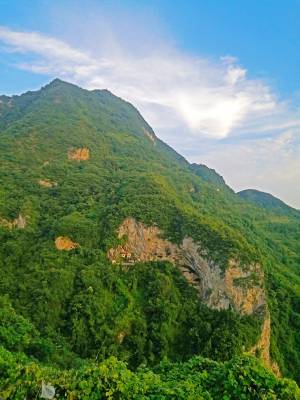 顺着羊肠小道,一眨眼就到了神母殿的正门,举目仰望偌大的“太师椅”般岩壁,让人叹为观止。环视左右岩石奇形怪状,岩壁缝中长出的冬青树摇曳招展,岩壁中的鼹老鼠飞来飞去,作乐撒欢。千仞之上,“百步还原”——“七叶一枝花”等名贵中药暗处生长。记得小时候,有一位住队的公社干部不幸摔伤,20余户群众自发将自用的楼梯用铁丝捆扎,搭接成几十米的“天梯”在峭壁之上采得“七叶一枝花”让伤者服用,不过几天伤情好转,身体安然无恙。