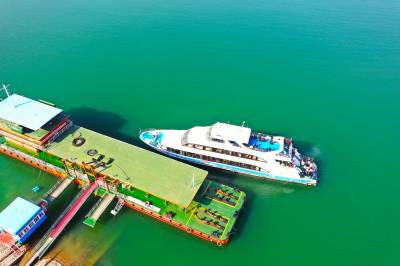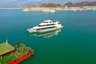 1月30日宜昌市夷陵区太平溪旅游港口高峡湖1号游船满载200多名游客离开港口游览三峡平湖。仅高峡平湖游轮每日接待游客超过1000人。两坝一峡游轮也在节后全部恢复接待,势头良好。