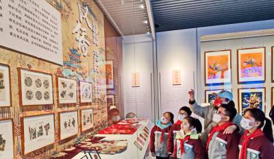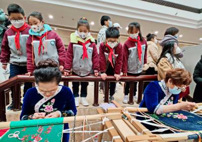 武汉市江汉区武汉关小学是教育部认定的中华传统文化示范校,武汉市新时代文明实践红色教育基地。在2023年即将开学之际,再一次传来了喜报,获得国家级“非遗进校园”湖北省武汉市汉文化(汉剧、汉绣、武汉童谣)创新实践成果奖。2月2日上午,该校师生带上自己的汉绣作品,前往武汉博物馆参观薪火相传绣韵流芳--汉绣保护成果展,上好开学之际社会实践活动第一课,现场向身边第六届“感动江汉”的非遗传承人任炜老师学习,通过与榜样对话,大手牵小手,传承一起走,进一步加强对非遗所蕴含的文化内涵和精神力量的汲取,引导少年儿童树立文化自信,激励他们主动担当起非遗传承保护的历史责任和使命。