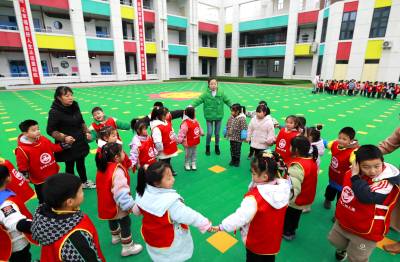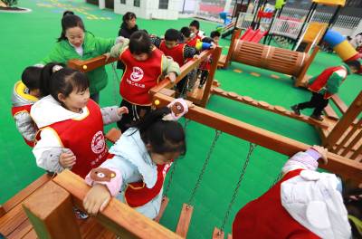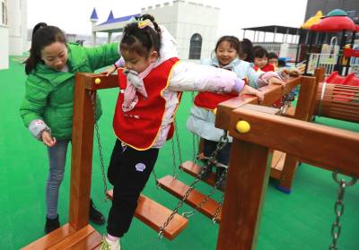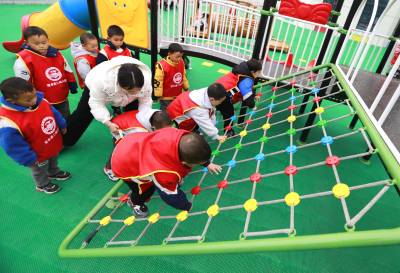 2月9日,竹山县宝丰镇第二幼儿园内欢声一片,孩子们正在开展户外活动,有的钻隧道、有的走平衡木、有的做“吹泡泡”“贴身”等游戏,孩子们玩得十分开心。