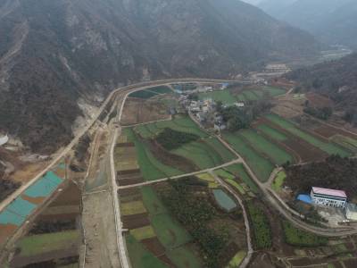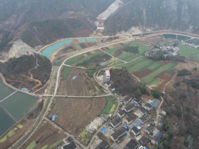 2月9日拍摄的十堰市郧阳区南化塘镇青岩村水系连通及水美乡村建设初见成效。(无人机照片)