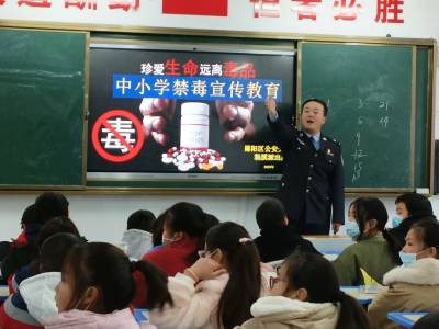 为了加强禁毒宣传教育,提高孩子们对禁毒知识的认识,增强禁毒意识。2月10日,郧阳区杨溪铺镇青龙泉学校邀请郧阳区公安分局杨溪派出所民警来到学校,深入各班开展以“珍爱生命 远离毒品”为主题的禁毒安全知识讲座。下午2:30,郧阳区公安分局杨溪派出所4名民警准时来到学校,在各班教师们的协助下开展活动。经过学校与民警们协商,根据学校实际情况,为了提升活动实效,便于民警们与学生近距离交流,4名民警分别进入各班分头开展禁毒安全知识讲座。活动中,民警们借助PPT课件用孩子们乐意接受的方式,向孩子们讲授了什么是毒品、常见毒品、毒品的危害以及禁毒相关法律等相关知识,课堂上,民警与孩子们有交流、有互动,孩子们学习气氛活跃、效果明显。“罂粟就是鸦片的原材料,通过学习认识我可以识别罂粟这种毒品植物了,如果我发现有人种植,我就告诉他这是违法的……”“毒品危害生命,种植、运输、贩卖毒品是违法的,我们要拒绝毒品、远离毒品”通过学习,孩子们纷纷表示将自觉远离毒品,做遵纪守法的好孩子。通过此次活动的开展,孩子们充分认识了毒品的危害,增强了抵御毒品侵害自我防护意识,有效调动了孩子们参与禁毒宣传热情。