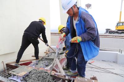 本报珠海讯(通讯员孟庆虎 江海明)2月11日,中铁大桥局珠机城际金海大桥工地施工生产热火朝天,工人们经过复工前的安全质量培训后,投入到工作岗位,全面开启节后施工生产的新局面,为今年通车验收节点目标全力全速奋战。