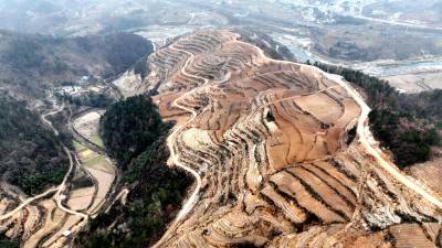 2023年2月11日,十堰市房县白鹤镇解家湾小流域,废弃荒山经过治理后变成环山而绕的层层梯地,栽植的茶苗泛着浅绿色厚植农民增收。近年来,房县综合治理小流域“荒山、荒坡、荒沟、荒溪”,提升荒山荒坡“保水、保土、保肥”的能力,建造百里茶叶长廊,让茶叶产业成为农民增收的主导特色产业。目前,全县小流域已有10.2万亩废弃荒山蝶变生态茶园,年加工干茶1100多吨,实现产值达到3.27亿元,带动2.1万户茶农农增收。同时,当地还有60余万亩荒地经过小流域水土治理,成了樱桃园、核桃园、冬桃园、中药材生产片区,为广大农民铺就了一条共同富裕之路。