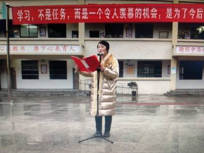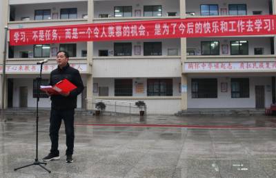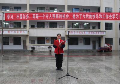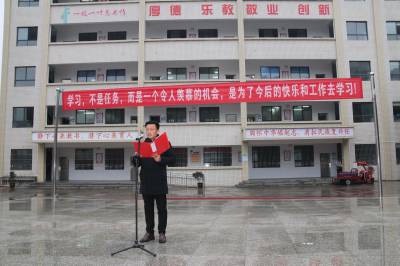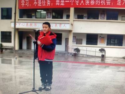 学生代表周文斌做新学期发言。在这春光焕发,播种希望的季节,周文斌鼓励同学们按时吃饭,早睡早起,合理用眼,保持正确的坐姿,每天锻炼身体,带着热情的干劲,抖擞精神,共同追赶春天的脚步。
