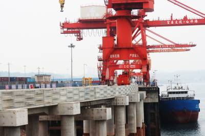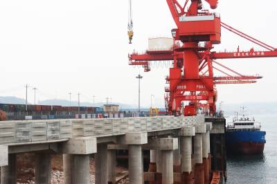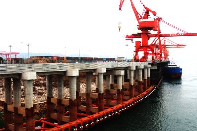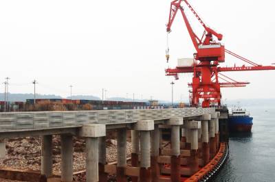 湖北秭归:三峡枢纽江南成品油码头完成首个墩台浇筑施工(客户端采稿)