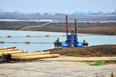 2月214日,伴随疏浚船的船笛鸣响,汉北河南垸至新沟段航道工程进入施工高潮。