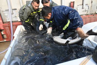 据汉江鲟鱼谷项目建设负责人潘协银介绍:“2月10日以来每天投放6个鱼池鱼苗,现已投放24个,计划3月中下旬所有鱼池满负荷运营。”视界网王涛摄