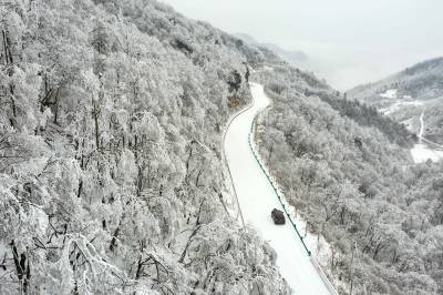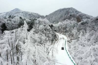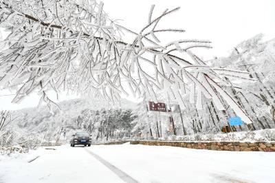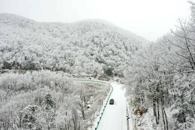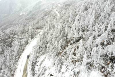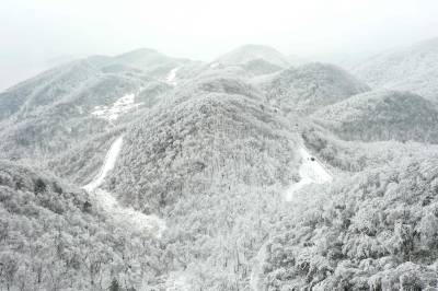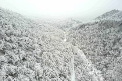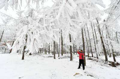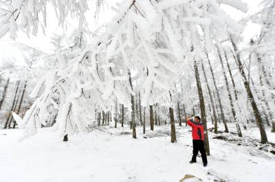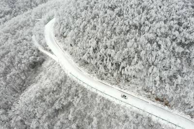 近日,一场春雪过后,由于昼夜温差较大,保康县大水林场出现雾凇景观,漫山遍野银装素裹,美如仙境,吸引游客驻足欣赏。