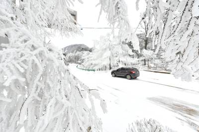 雾凇,又称“树挂”,是低温时空气中水汽直接凝华,或过冷雾滴直接冻结在物体上的乳白色冰晶沉积物,是非常难得的自然奇观。