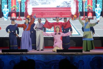 为推动文化产业赋能乡村振兴,日前,湖北省十堰市郧阳区创作了情景剧《万古一地》,并在该区乡村旅游重点村柳陂镇龙韵村定期演出。该剧时长两个小时,分为山野欢歌、古韵长歌、英雄赞歌、时代颂歌四个篇章,剧中深度融入郧阳从古至今的文化元素,情景再现郧阳波澜壮阔的发展历程。