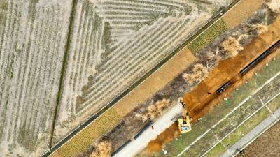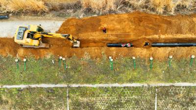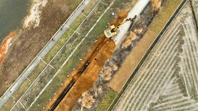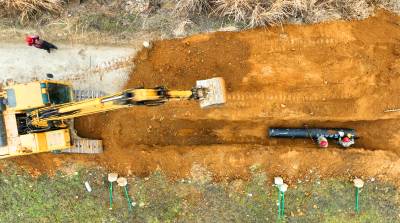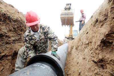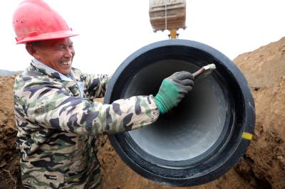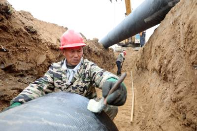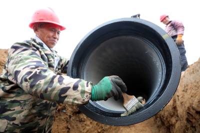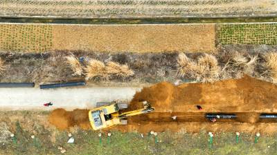 2023年2月18日,十堰市房县方家畈供水巩固提升工程建设如火如荼,图为施工工人正在涂刷主管道密封胶、铺设安装供水管网。新年伊始,房县集中资金、机械、人员开工建设供水巩固提升工程、饮水水源项目,冲刺饮水工程建设“开门红”。目前,该县饮水水源工程堰河水库、柳树垭水库建设鏖战犹酣,两座水源工程蓄水达1230多万立方米,方家畈供水巩固提升工程进入主管网安装阶段,工程完工后受益城关、军店、白鹤等3个镇23个村15.14万人安全饮水,还有一批农村供水巩固提升工程也将陆续开工建设。截至现在,全县完成兴建农村供水工程1098处,供水规模达到日供水量6.11万吨,全县20个乡镇282个行政村,682个易地搬迁小区40.55万人实现安全饮水全覆盖,全县自来水普及率达到92.38%,自然村通水率100%。