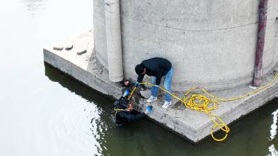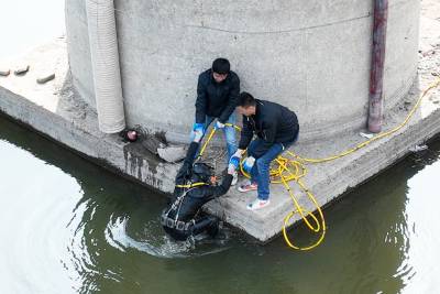 2023年3月7日,专业潜水人员在十堰市房县关门山水库潜入水下摸排供水设施闸门启闭运行稳定情况。春耕备耕大忙时节,房县水利和湖泊局组织4个工作专班分赴全县77座中小型水库,拉网式排查水库大坝、供水、排水系统设施安全隐患,针对存在的安全问题,现场整改或限期完成处理险情,保障春耕生产、农村安全饮水供水需求。目前已完成整治8座中小型水库维修养护与安全隐患整治。