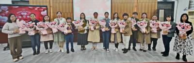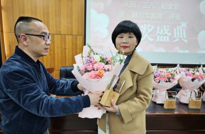 > 庆祝"三八"妇女节 表彰魅力女教师 男教师献花祝贺
