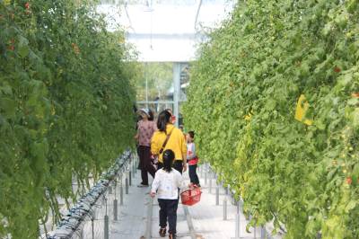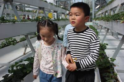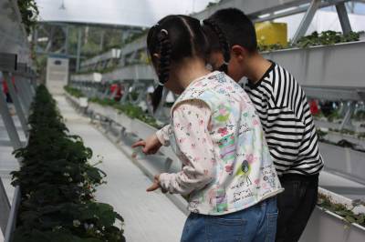 植树后,大手牵小手前往现代农业育苗科技园,了解现代农业的发展。走进透明的玻璃屋,绿油油的青菜、红彤彤的西红柿、香甜可口的奶油草莓.........一片生机盎然。工作人员细心为大家讲解水培和无土栽培的方法和优点,这些立体种植、无土栽培、水培技术令人惊叹,让大家体验到我国最新农业发展成果,也让大家感受到高科技农业的魅力。(胡红娟)