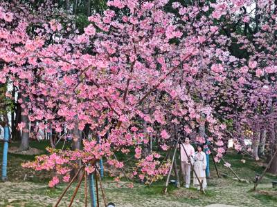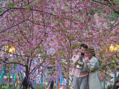 3月9日晚上6时,2023年东湖樱花节开幕式在武汉武昌东湖樱花园举行。东湖樱花园当晚开启夜间赏樱模式。离别一年后,东湖樱花园的樱花如约绽放,80余个品种上万株樱花相约在阳春三月天里。