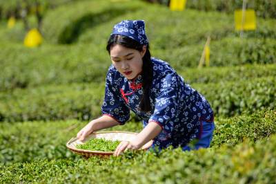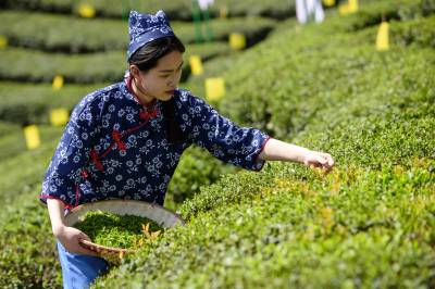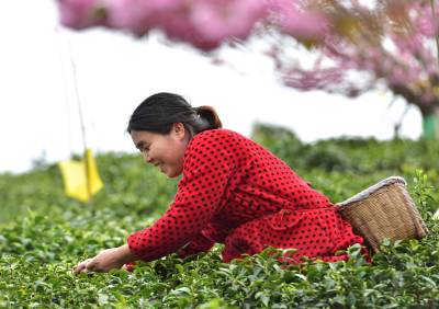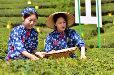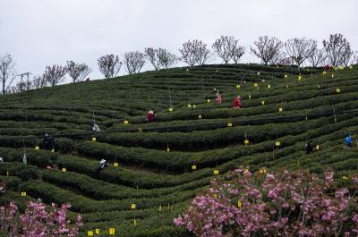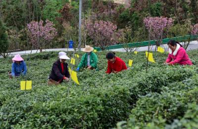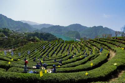 4月9日,竹山县城关镇组织数十名青年志愿者在刘家山插满黏虫黄板的生态茶园开展公益采茶表演、网络直播打卡活动,助推春茶销售,带动茶乡旅游业发展。