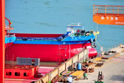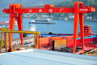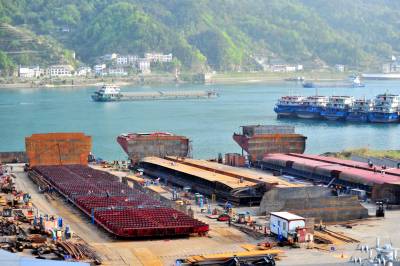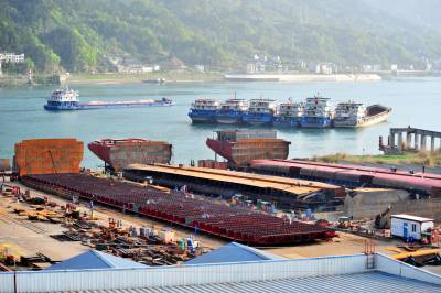 随着长江黄金水道航运事业快速发展,宜昌打造的西陵峡沿岸造船工业走廊闪耀“船”奇色彩,致力构建起绿色智能船舶产业链。其中,乐天溪造船厂投产20年来,已拥有多项CCS认可的焊接和建造施工工艺,具备轴舵系自主加工能力,累计完成60多万载重吨新船建造任务,自行设计及建造的滚装船、干散货船、多用途货船、130米川江及三峡库区大长宽比示范船等均已投入营运。(视界网 张国荣 摄)