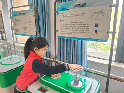 “跳舞回形针”、“隔空称重”、“磁悬浮灯泡”、“心跳测试”、“红外血管成像”等各种有趣的科技互动展品让学生们兴致勃勃。