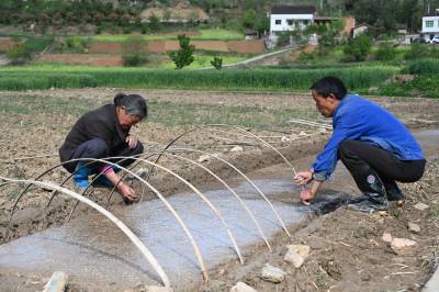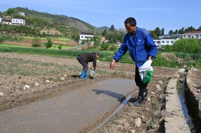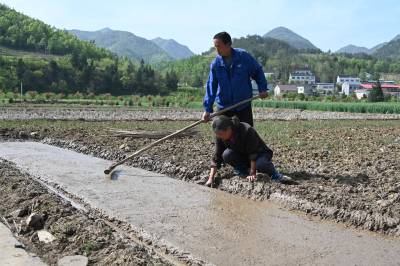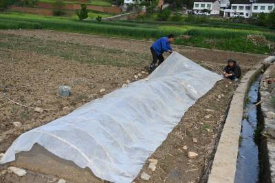 春暖花开气温升,不误农时抢育秧。4月10日,十堰市郧阳区南化塘镇西河村农民在整理水稻育秧田、播种、覆土、搭设温棚。视界网王涛摄