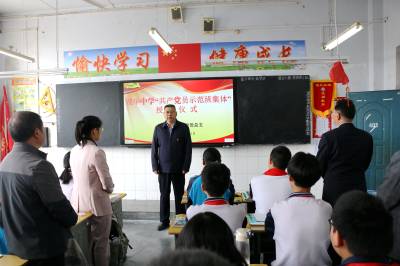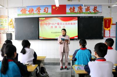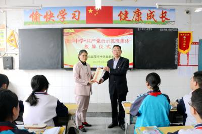 在授牌仪式上,该校党总支副书记、校长万波为七(8)班、八(7)班等17个班级授予了“共产党员示范班集体”标牌。