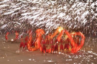 铜梁火龙每条长20米,由10人玩舞。铁水温度在1600至1700℃,铁水迸发金花,特色鲜明,魅力无穷,风味古朴粗犷,气氛激烈火爆,场面宏大喜庆。
