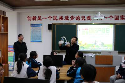 活动中,县市场监管局副局长张再新一行4人深入该校科技创新室,参观了学生科技创新作品,对该校在科技创新方面取得的成绩给予了充分肯定。现场为学生发放了“世界知识产权日”宣传手册,并以知识产权知识普及为主题,围绕知识产权的特征、范围、人身权利与财产权利、如何进行知识产权保护等方面的内容进行了宣讲。