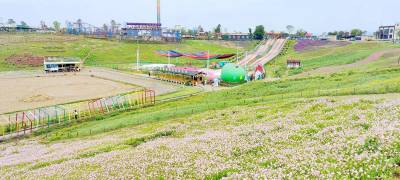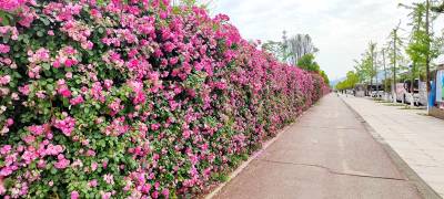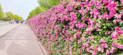 5月8日,湖北省十堰市郧阳区3A级旅游景区中华水园内的同心广场,鲜花盛开,游人如织。 浅红、桃红、黄色的蔷薇花,形成了花墙,芳香四溢,令人陶醉,吸引众多游人拍视频。 芝樱花肆意绽放,形成了花的海洋。花色多样,有紫红、粉红、白色等,花形独特,粉嫩秀丽,开遍山野,十分浪漫。 同心广场是中华水园的一景,该主题公园位于郧阳区天马大道,建有集亲水、护水、观水综合性休闲娱乐为一体的六大主题公园。(视界网 张云朝摄)