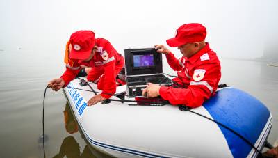 嘉鱼红十字水上救援志愿服务队开展现代水上救援装备训练
