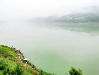 5月27日,一群垂钓爱好者冒着蒙蒙细雨,在河边练杆。每到周末,十堰城区及周边垂钓爱好者就三三两两地相约一起,驱车来到汉江边,一人一杆,尽享垂钓的乐趣。(周宗华 摄) 作者地址:十堰市郧阳区五峰乡大石沟村;电话:15727082525.