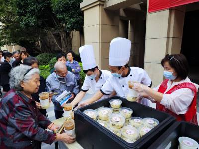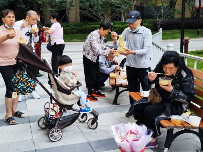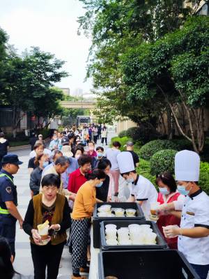 金家墩社区分别在悦庭1号楼十字辊闸门、5栋附1层地库停车场、4栋1单元架空层旁三个点位免费送凉面、品热饮,一碗碗凉面、特制芝麻酱、香甜米酒扑面而来,小区居民有序排队,兴高采烈地领取爱心早餐,吃着美味的凉面,心里美滋滋,凉爽爽。