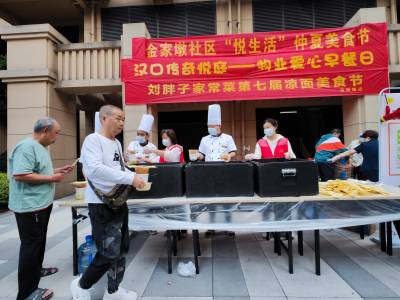 5月23日上午,武汉市江汉区唐家墩街道金家墩社区联合汉口传奇悦庭物业、刘胖子第七届凉面节社区公益行,在悦庭小区开展“悦生活”仲夏美食节活动,本次活动吸引了百余名社区居民参与,刘胖子第七届凉面节社区公益行,将在武汉三镇从5月中旬同时进行至6月20日。