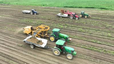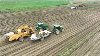 5月29日,在位于襄阳市襄城区余家湖办事处的襄阳绿正农业有限公司,农民操作播种机械进行马铃薯收获作。当天,3台大型机械收获马铃薯1000余吨,该公司1.3万亩订单马铃薯开始全面收获。