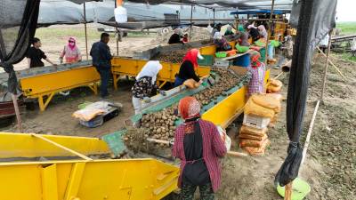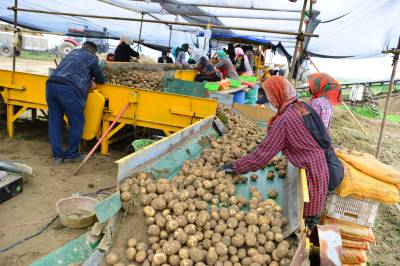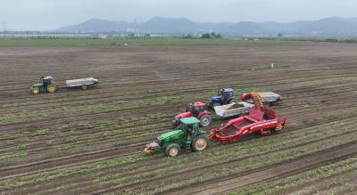 当天收获的是马铃薯新品“大西洋”,该品种具有抗旱性好、干物质高,淀粉含量低、适应性强、产量高、抗PLRV、休眠期短、加工后色泽好、耐储存还原糖低,抗疮痂病、感环腐病等优点。11月底种植,次年5月即可上市销售,单亩产值可突破5000元,是传统农业种植的5倍,具有很强的经济效益。