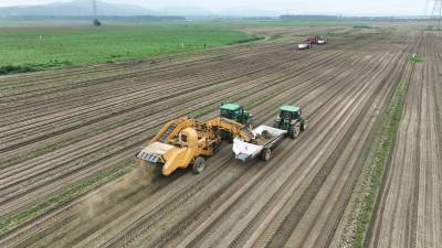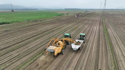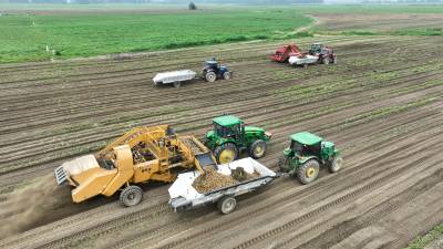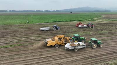 近期,湖北省襄阳市数十万亩马铃薯进入收获季节,农民抢抓农时进行马铃薯收获,田间地头一派繁忙景象。