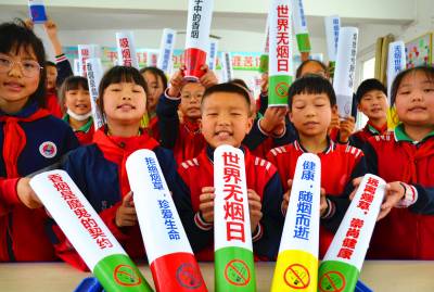 当日,湖北省十堰市郧阳区柳陂镇中心小学组织开展了“拒绝烟草 珍爱生命”主题“无烟日”活动,学生们通过学习控烟知识、用旧挂历等材料制成写有吸烟危害性劝戒语的“巨烟模型”送家长或烟民等方式,劝导人们戒烟,倡导健康生活,共营“无烟”环境,以迎接“世界无烟日”的到来。
