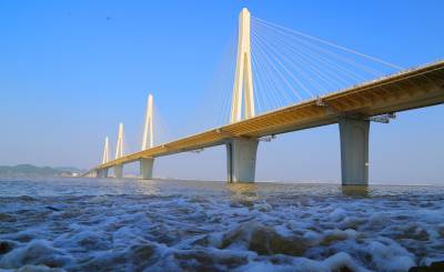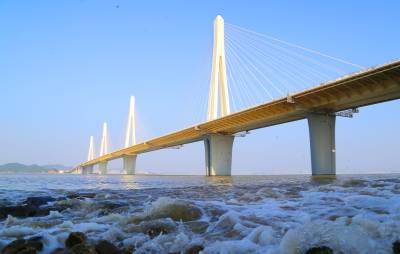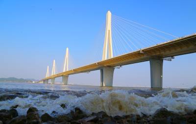 这几天,受今年第2号台风“玛娃”和潮汐影响,中铁大桥局承建的珠机城际金海大桥海面掀起几米高的巨浪。大桥在海浪中像一条金色的巨龙横卧在西江磨刀门出海口,格外壮观。