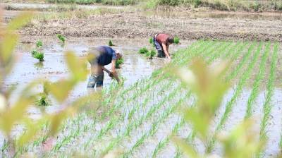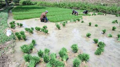 > 郧阳初夏时节水田灌溉插秧忙